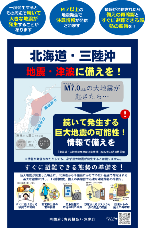2026年4月20日19:30、「北海道・三陸沖で後発地震注意情報」が発表されました。