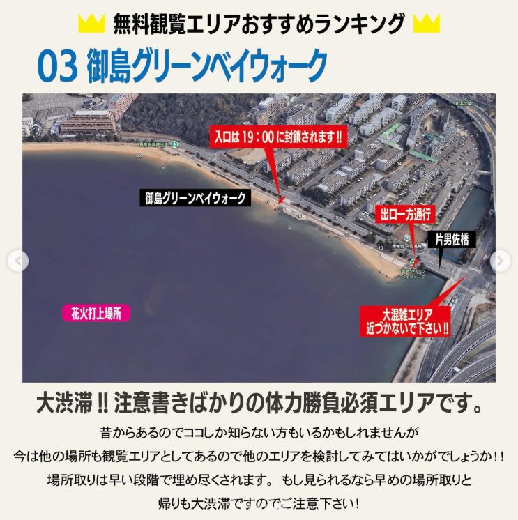 ●帰りは駅、駐車場が混雑するため、花火終了前に少し早めに動く