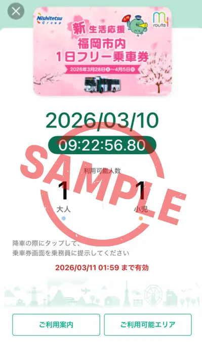 西鉄バスが、2026年3月28日(土)〜4月5日(日)の9日間限定で『福岡市内1日フリー乗車券』をアプリ内で300円で販売 します。