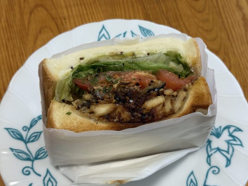 サバサンドは、サバの焼けた香ばしい薫りが食欲をそそる。