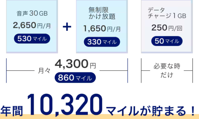 | 10GB | 1,650円 | 330マイル |