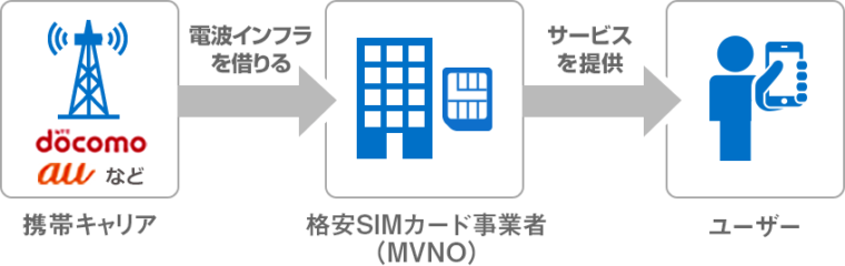 MVNOは、自社でモバイル通信ネットワークのインフラを持たず、MNOからネットワークを借りて通信サービスを提供する企業のことを指します。