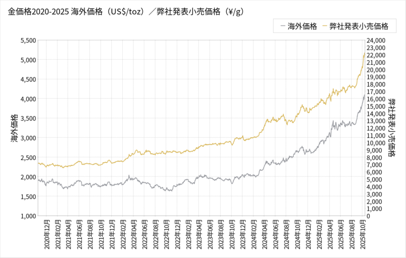 2025年10月、金価格がついに1グラムあたり22,000円を突破し、過去最高値を更新しました。