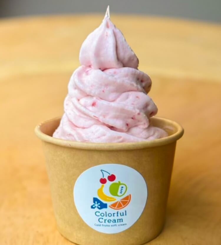 北海道産の特注ジェラートと、瞬間冷凍したシャリシャリ爽やかなフローズンフルーツが混ざり合った、新食感ソフトクリーム!