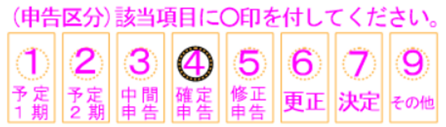 ●「申告区分」は「4.確定申告」に〇をつけましょう。