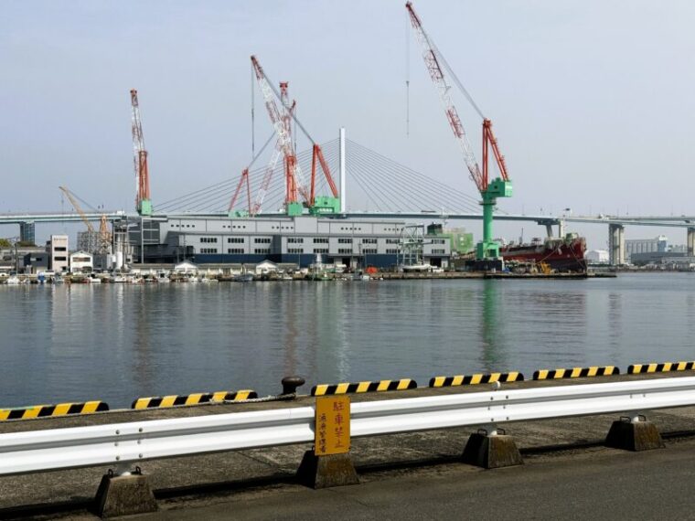 橋の向こうは博多湾。