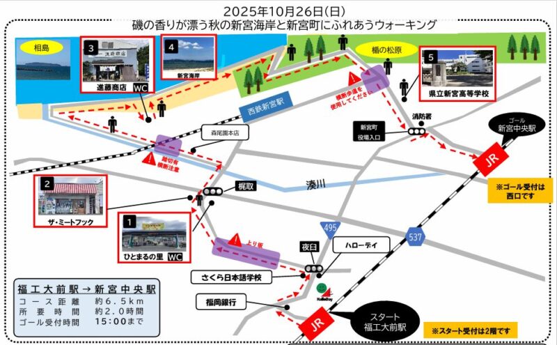 | 福岡 | 9月27日(土) | 福間駅 | ぐるっと福津の見どころ巡り | 約10km |