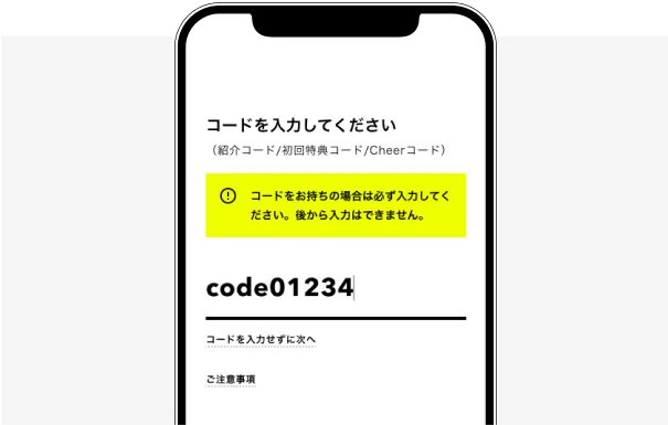 紹介コードは、口座開設を進める途中で表示される「紹介コード入力欄」に入力します。