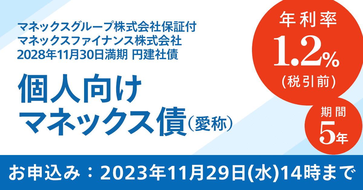| 商品名 | マネックスグループ株式会社保証付 マネックスファイナンス株式会社 2028年11月30日満期 円建社債 |