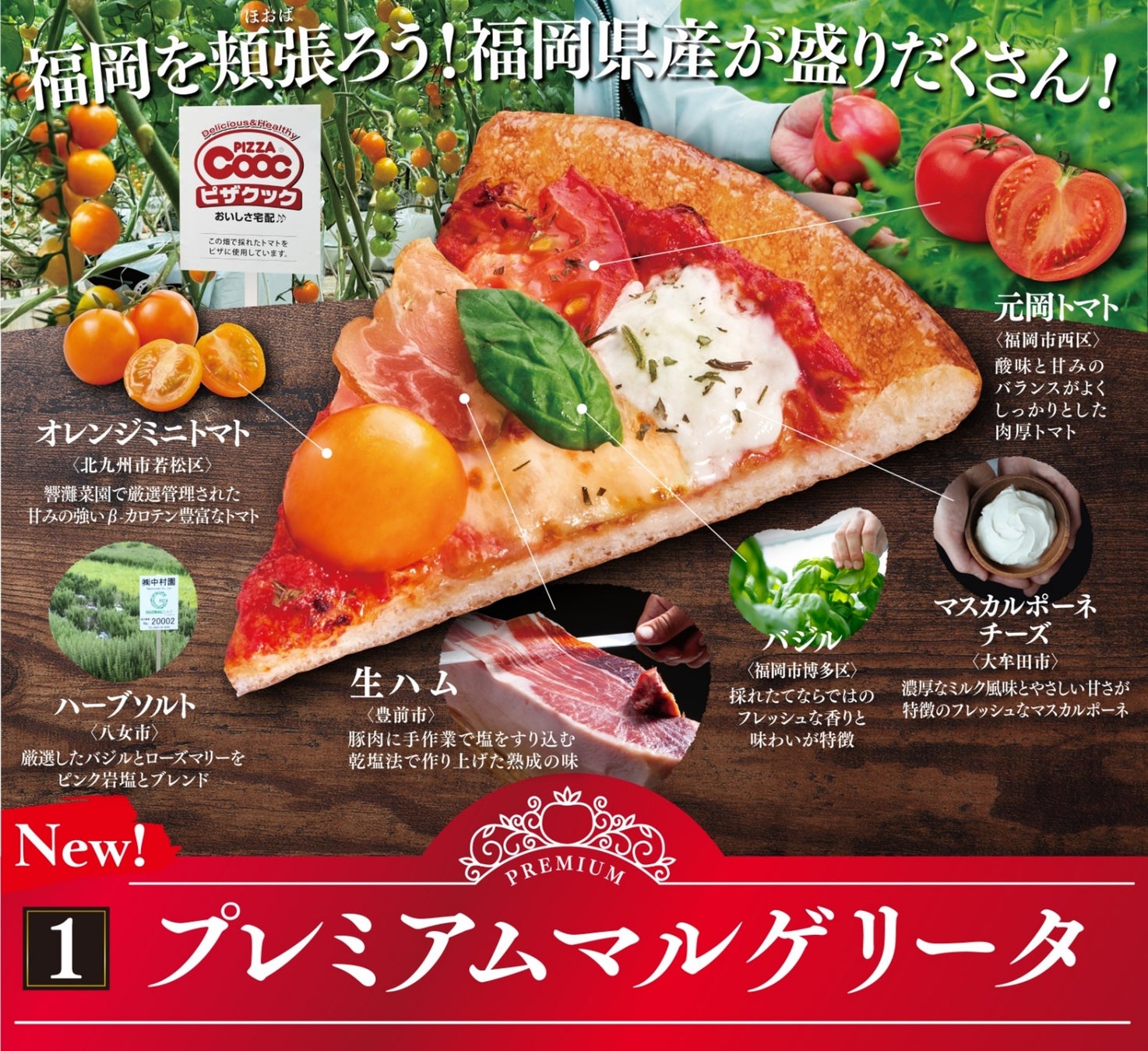 ピザクックの福岡県産食材を厳選した「プレミアムマルゲリータ」をご紹介しました。