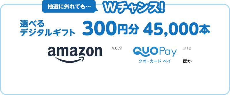 ■抽選に外れた方にも、Wチャンス(デジタルギフト 300円分 45,000本)。