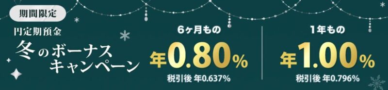 楽天銀行の「円定期預金 冬のボーナスキャンペーン」をご紹介しました。