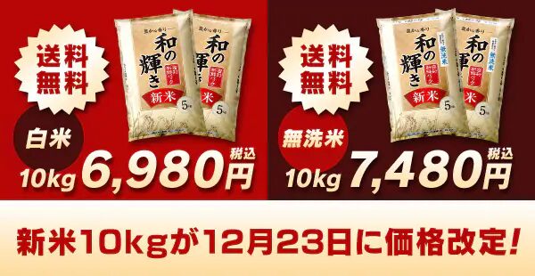 | 令和7年産 国産ブレンド米「和の輝き」10kg | 7,980円 | 6,980円 | 1,000円お得(12.5%OFF) |