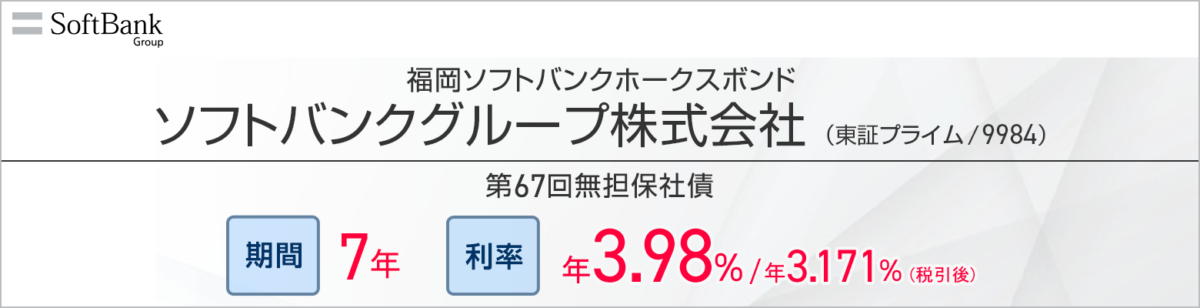 ソフトバンクグループ第67回無担保社債(ホークスボンド)を紹介しました。