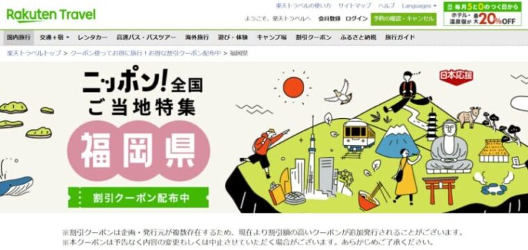 • ふくおか平日おトク旅(20%OFF・1人1泊あたり上限3,000円)
